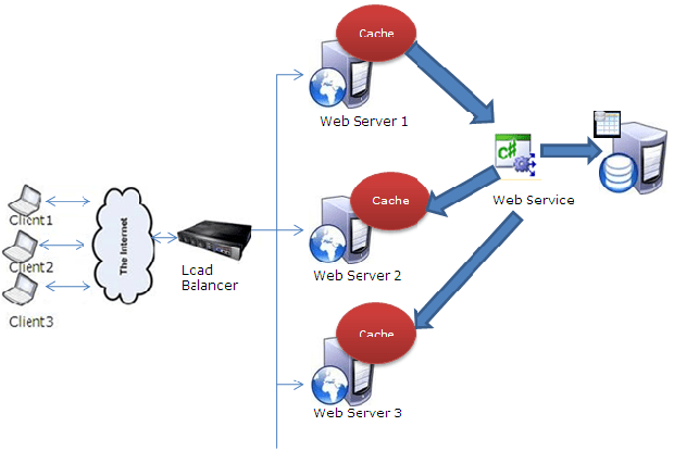 In this, your cache not on the web server but you can store it on some another server. So every web server is going to connect this machine to get the cached data. Now you will be asking if the cache is stored on some another box, what will the performance benefit we’ll get. So I would suggest you to have a remoting (TCP) connection to that caching server and it is so fast to get the data from there, that there would not be any much difference in having the data at web servers memory or at another cache server.