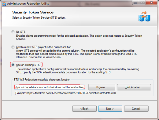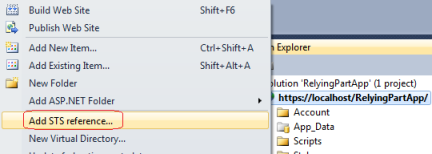 As discussed, I have created a ASP.NET web application project using default template and hosted at IIS. Now the next step to build a trust relationship with Relying party and Federated Provider. So as we have already seen in our part 2 post that how to build relationship between Identity Provider and relying party. We require here the federation metadata from the identity provider and add the STS (Securty Token Service) reference. I am adding those steps for the completeness of the post.