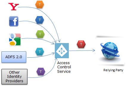 As here in above image, we can see that every Identity Provider send different type of token. Access control service process these and create a new token and sends to Relying Party.