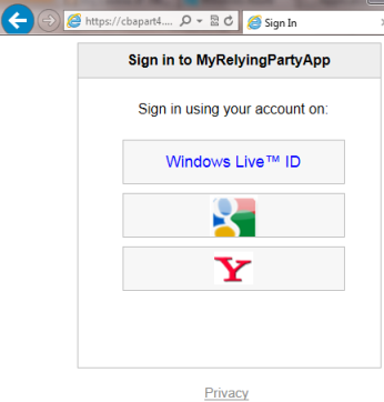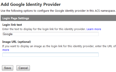 It asks the that display and any image for that if we want to show that at login link. I provided an image and Clicked on save. Similarly we can add Yahoo as an Identity provider. Now we have three Identity providers for our federation provider: Google, Yahoo and Windows Live Id.