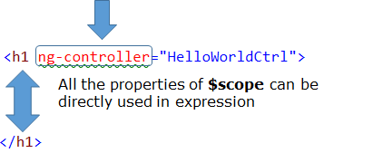 6. As discussed earlier that this attribute is required to bootstrap the AngularJS application so I have put it in body element. Putting it at body element allows us to use AngularJS inside this tag. In the above application, I could have put it at h1 element as well because I am using AngularJS inside this tag only. The scope can be displayed pictorially as