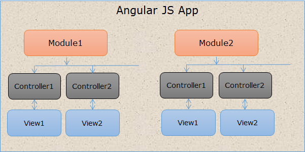 Above image is for the basic understanding. It shows an AngularJS application can have multiple modules and every module contains controllers, views etc.