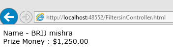 NormalFiltersThe Filters worked as expected. Similarly we can use custom filters in Controller as well. Let’s see