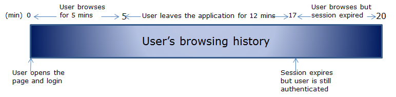 But at certain browsers, it behaves differently. Like Session gets time out if the last request made was 10 (in my example session timeout is 10 minutes) or more minutes and on every request the counter get resets for 10 minutes but Authentication timeout does not work in same ways in different browsers. Like if have authentication timeout for 10 minutes, the authentication timeout counter does not get reset on every request to 10 minutes. Sometimes there are some performance improvement has been done which resets on the counter only at certain points say if after 5 or 7 minutes as to reset the authentication timeout on very request is costly. And this may lead to discrepancy.