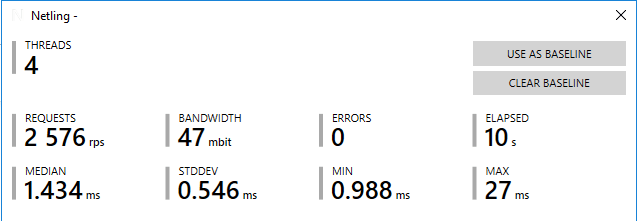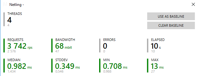 As mentioned above, with ASP.NET Core 2.2 allows us to host both the In-process and Out-of-process model (It is similar to earlier version). I have done sample load test using the Netling (know more about this tool here) and for out-of-process result is here