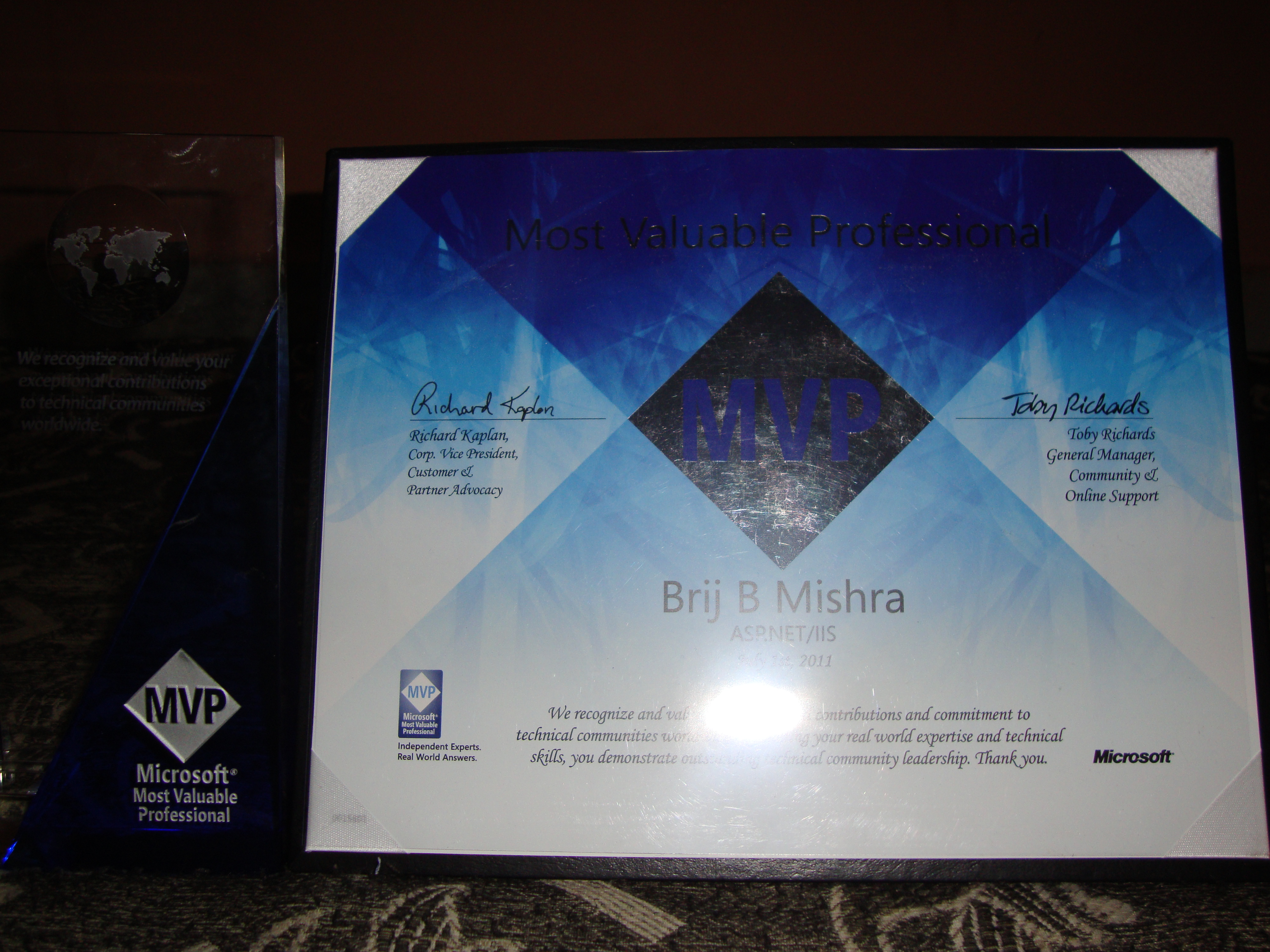 If you also want to know more details about this award you can refer MVP Award Home page and want to get this prestigious award then get the details from here. You can also contact me for any specific details on my email id brij.mishra [at] outlook [dot] com or tweet me at @code_wala and I will be very happy to guide you.