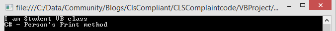 CLSComplaintWarningNow if you see that then it is showing an warning that this code is not CLS-Compliant Now you can correct it. Once you remove all the CLS-Complaint warnings and you can take a deep breath. You wont get any complaint if your code is used on any other language in .NET platform.